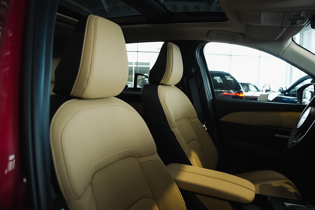 - Przedni podłokietnik skórzany z podwójnym przeszyciem